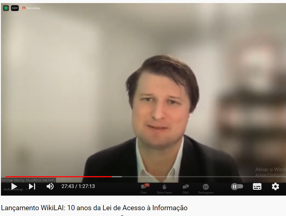 Michael Morisy foi um dos painelistas no lançamento da WikiLAI, realizado pela Fiquem Sabendo em 18 de novembro de 2021 (Imagem: Reprodução/YouTube)